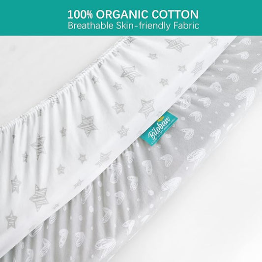 Waterproof Pack n Play Fitted Sheets 2 Pack,100% Cotton Mini Crib Mattress Cover Protector 38" X 25" Fits for Baby Playpen/Playard Mattress, Portable Crib Sheet, White & Grey Star Print