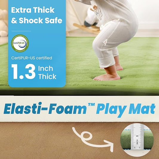 1.3" Thick Baby Play Mat for Floor, 39x59 Foam Tummy Time Mat, Padded Support Soft Plush Nursery Rug for Infant Kids Toddler Crawling Kick Activity (Olive Green)