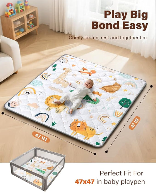 Baby Play Mat 47"x47", Non-Slip Baby Mat for Floor, Soft Thicker Playpen Mat, Portable Playmat, Crawling Mat for Babies, Toddlers & Infants to Play and Learn(Animal)