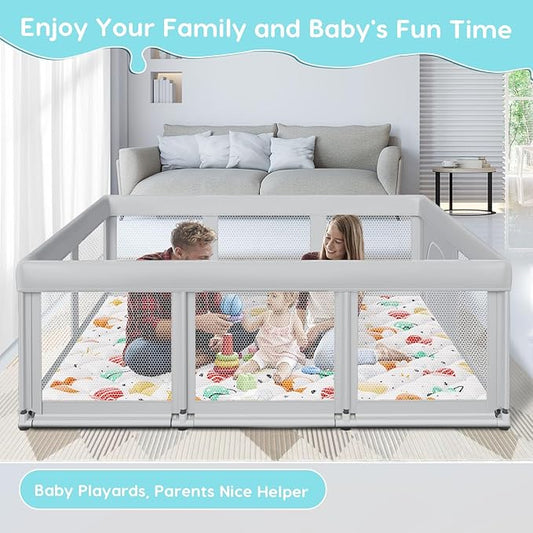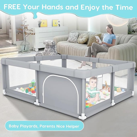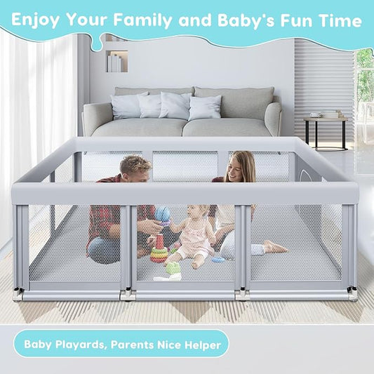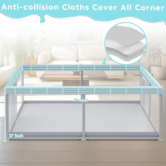 79" ×79" Extra Large Baby Playpen, Baby Playard for Babies and Toddlers, BabyFence Play Pens for Indoor & Outdoor, Sturdy Safety Play Yard with Soft Breathable Mesh, Anti-Fall, Grey