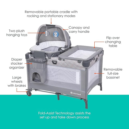 Baby Trend Lullaby Nursery Suite EZ-Fold Playard with Portable Rocking Lounger, Madrid Plaid