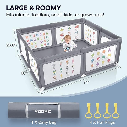 Foldable Baby Playpen, Extra Large Play Pen for Babies and Toddlers, Baby Fence Play Yard, Safety Kids Portable Playpin Indoor&Outdoor (59"X71",Grey)