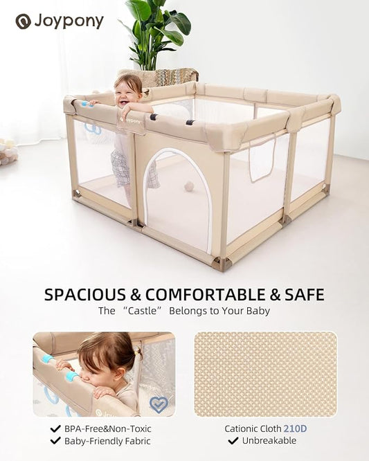 Playpen with Mat 71x59inch - Extra Large Baby Play Pen for Babies and Toddlers - Indoor and Outdoor Baby Playpen with Soft Breathable Mesh Cover - Sturdy Foam Babies Gate Playard (Apricot)