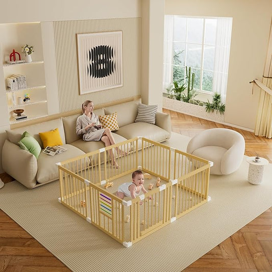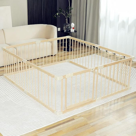 Baby Playpen Play Fence Gate Play Pen Wood Large,Playpens for Babies and Toddlers Kids Indoor,Baby Play Yards Gym