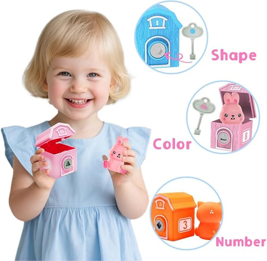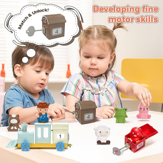 Farm Train Toys for Toddlers 1 2 3 Years Old, Learning Montessori Toys with 10 Farm Animals Finger Puppets 1 Farmer, Counting Matching Sorting Barns with Keys, Educational Toy Gift for Boys Girls