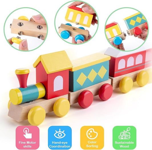 TIGERHU Wooden Train Set | Educational Building Toys with Snap-On Design, Eco-Friendly Solid Wood Tracks & Non-Toxic Materials for Ages 3-8