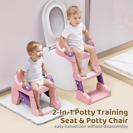 Potty Training Seat, 3-in-1 Toddler Toilet Seat with Step Stool Ladder, Splash Guard Anti-Slip Pad, Foldable Potty Chair with Soft Cushion for Toddler Kids Boys Girls