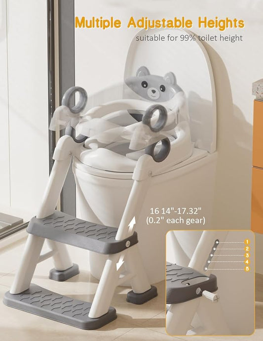 Bebamour Potty Training Toilet 3 in 1 Multi-Functional Potty Seat Detachable Baby Potty Step Stool Anti-Slip Stable Potty Training Toilet with 100 Pack Trash Bags for Baby Toddler Kids(Grey)