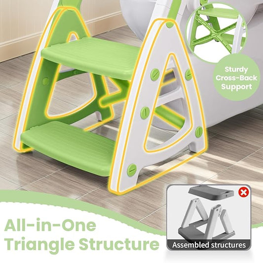 Primlect Potty Training Seat, 2-in-1 Toddler Toilet Seat with Step Stool, Ultra-Stable Potty Chair Attachment, Adjustable Seat and Step Ladder, Non-Slip Design, Splash Guard for Boys and Girls(Green)