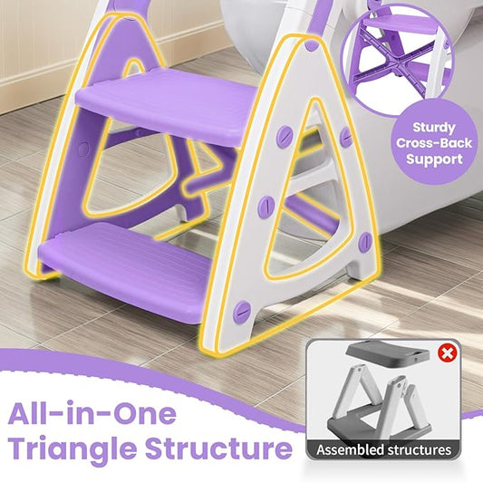 Toilet Seat, Potty Training Seat for Toddler, Upgraded 2-in-1 Potty Toilet Training for Boys and Girls,Waterproof Cushioned Mat with Non-Slip Step Stool(Purple)