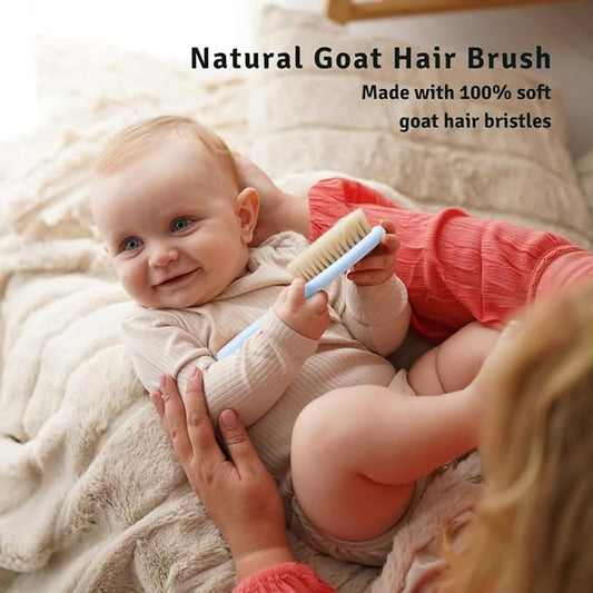 Baby Hair Brush - Ultra Soft Goat Bristles - Wooden Cradle Cap Brush for Newborns, Infants, Toddlers - Gentle Scalp Grooming and Styling for Baby Girls and Boys (Sky)