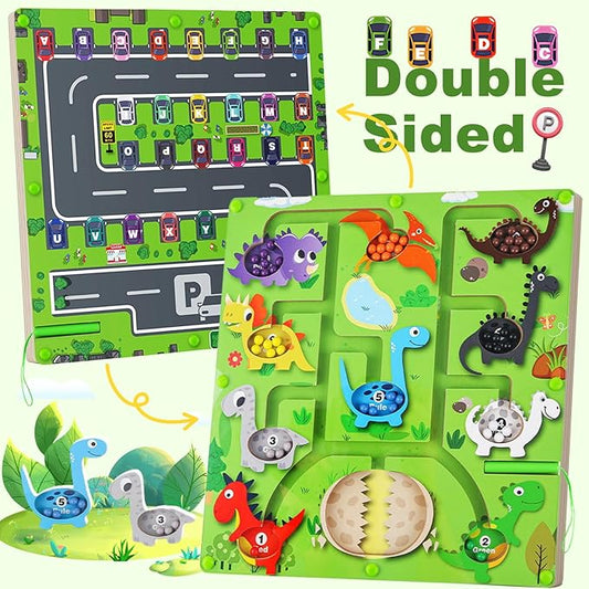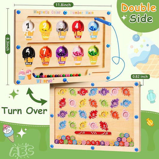2 in 1 Magnetic Color and Number Maze, Montessori Educational Wooden Puzzle Toy for Kids Ages 3-13, Double-Sided Alphabet Counting Game Board for Fine Motor Skills, Preschool Learning Gift