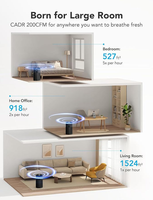 Air Purifier for Large Room: Ture HEPA Air Filter for Allergies Pets Asthma Smoke Air Cleaner - 4125 Sq Ft Coverage Removes 99.9% of Pet Dander Dust Mold Odors Pollen