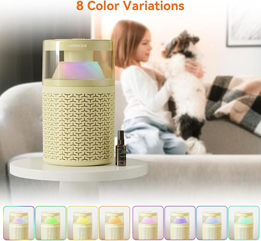 AIRROMI Air Purifier for Bedroom Home,HEPA Filter,Covers Upto 549 Ft²,Quiet 360°intake Air Cleaner with Fragrance ponge for Better Sleep,Night Light,Filters Smoke,Pet Dander,Allergies,Dust,A2005Yellow