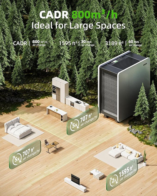 CleanForce Rainbow H13 True HEPA Air Purifier for Home Large Room, Bedroom, up to 2550sqft, Smart App-Control air Quality Monitor, Filters dust Pollen Smoke Odor VOCs