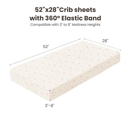 Konssy Muslin Crib Sheets for Boys, Soft Cotton Neutral Baby Sheets for Standard Crib Mattress 2 Pack, 52"x28" (Camel, Sun)