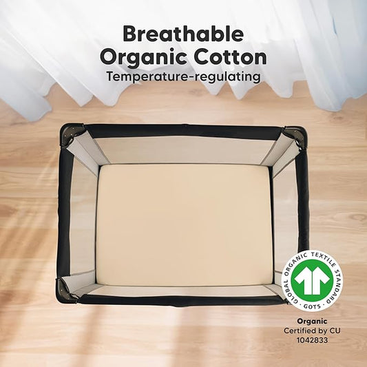 2-Pack Mini Crib Sheets Fitted - 38x26 Pack N Play Sheets for Pack and Play Mattress, Organic Cotton, Soft & Breathable Playard Bedding, Neutral Mini Toddler Bed Cover for Boys, Girls (Cameo)