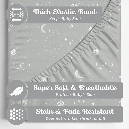 Crib Sheets Neutral - Fitted Baby Crib Sheets Bed for Girl Boy - 2 Pack Standard & Toddler Mattress (Galaxy, Moon, and Stars) - Buttery Soft Organic Cotton Blend