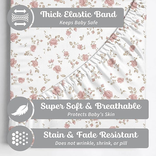 Crib Sheets Neutral - Fitted Baby Crib Sheets Bed for Girl Boy - 2 Pack Standard & Toddler Mattress (Antique Rose) - Buttery Soft Organic Cotton Blend