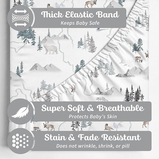 Crib Sheets Neutral - Fitted Baby Crib Sheets Bed for Girl Boy - 2 Pack Standard & Toddler Mattress (Woodland Forest Animals) - Buttery Soft Organic Cotton Blend