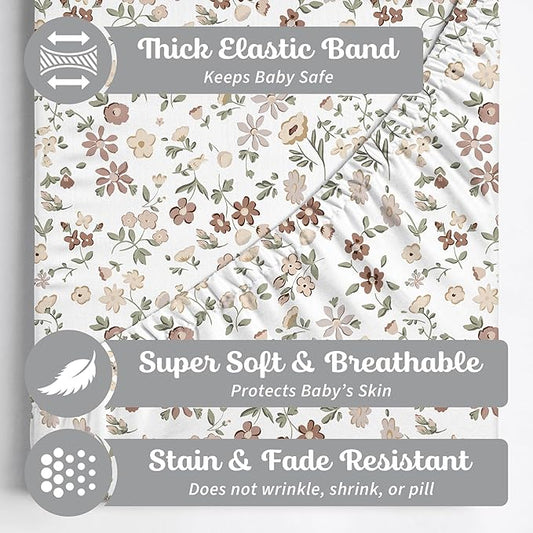 Crib Sheets Neutral - Fitted Baby Crib Sheets Bed for Girl Boy - 2 Pack Standard & Toddler Mattress (Poppy Fields) - Buttery Soft Organic Cotton Blend