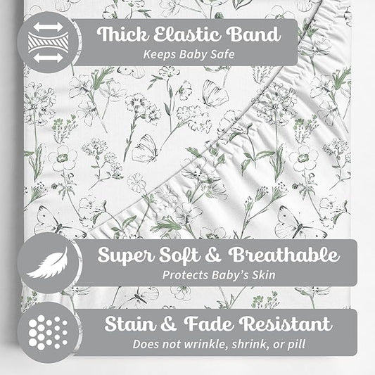 Crib Sheets Neutral - Fitted Baby Crib Sheets Bed for Girl Boy - 2 Pack Standard & Toddler Mattress (Butterfly Garden) - Buttery Soft Organic Cotton Blend