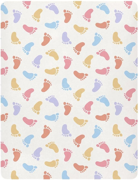 Baby Footprint Crib Sheets for Neutral Bassinet Play Sheets,Sheets Toddler Bed Sheets for Baby Boys Girs 39 * 27 * 5in
