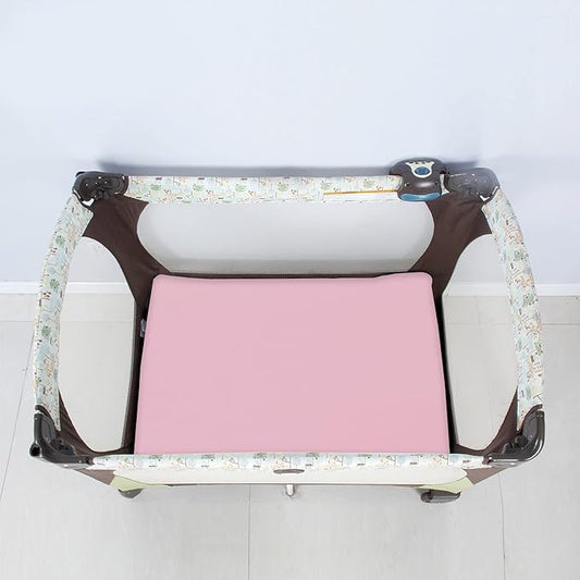 Pack and Play Sheets Fitted 4 Pack, Breathable Baby Playard Mattress Sheet Compatible with Graco Pack n Play, Mini Crib Sheets Fitted for Girls, Pink & Purple Playpen Mattress Sheets