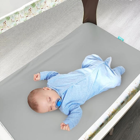 4-Pack Fitted Pack and Play Sheets for Boys and Girls - Breathable, Soft Microfiber Baby Sheets in Grey and White
