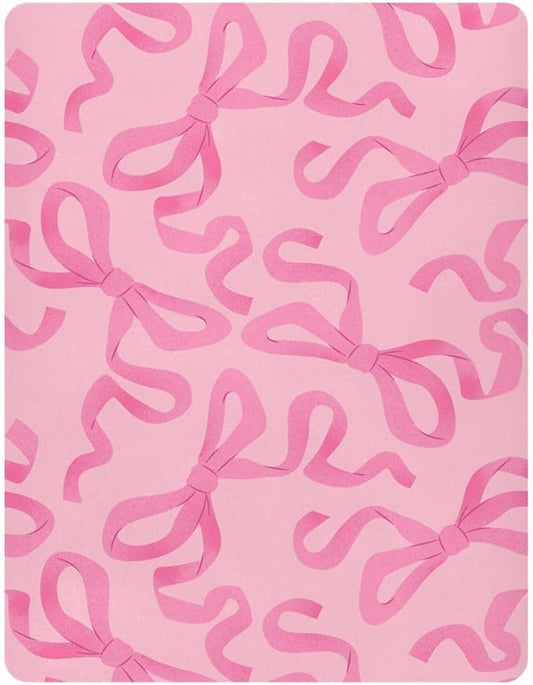 Baby Crib Sheets Pink Bow on Light Crib Sheets for Boys Girls,Neutral Bassinet Toddler Bed Play Sheets Breathable Soft and Portable 52 * 28 * 9in