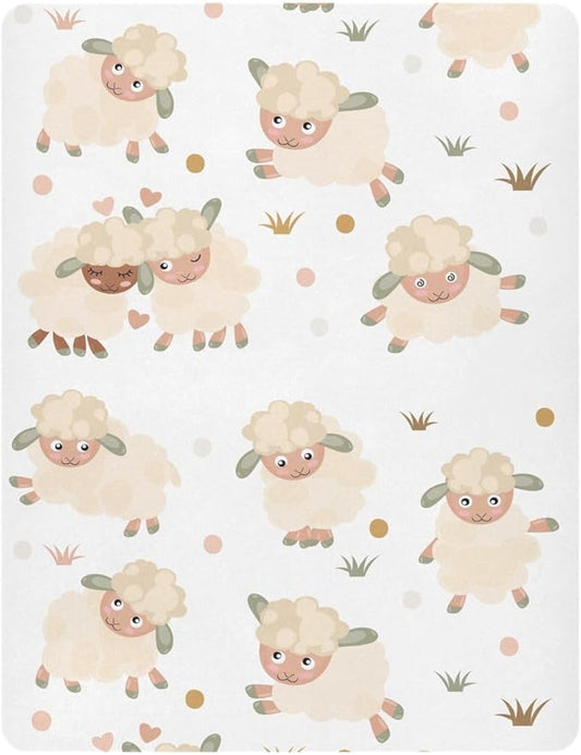 Baby Crib Sheets Cute Rams Cartoon Sheep Lambs Crib Sheets for Boys Girls,Neutral Bassinet Toddler Bed Play Sheets Breathable Soft and Portable 52 * 28 * 9in