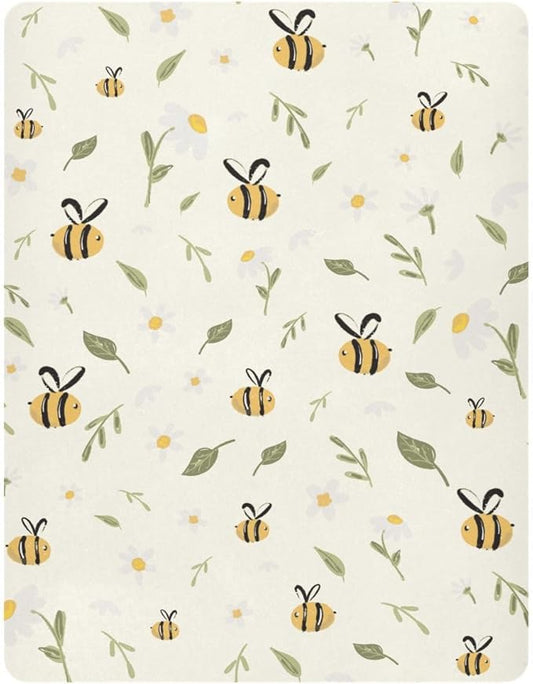 Baby Crib Sheets Bee Honey Crib Sheets for Boys Girls,Neutral Bassinet Toddler Bed Play Sheets Breathable Soft and Portable 52 * 28 * 9in