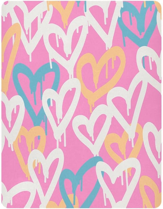 Graffiti Hearts Crib Sheets for Neutral Bassinet Play Sheets,Sheets Toddler Bed Sheets for Baby Boys Girs 39 * 27 * 5in