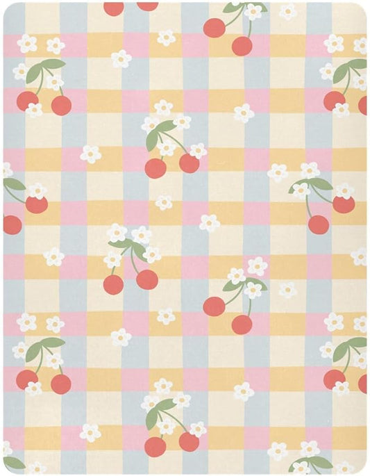 Gingham Flowers Crib Sheets for Neutral Bassinet Play Sheets,Sheets Toddler Bed Sheets for Baby Boys Girs 39 * 27 * 5in