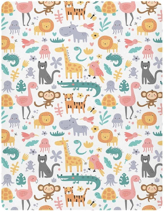 Baby Crib Sheets Funny Jungle Animals Crib Sheets for Boys Girls,Neutral Bassinet Toddler Bed Play Sheets Breathable Soft and Portable 52 * 28 * 9in