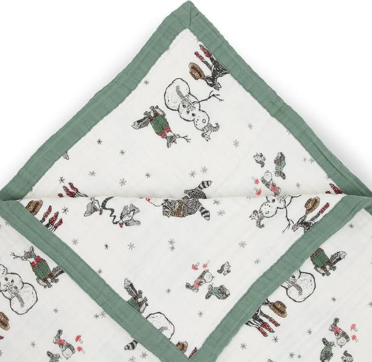 Little Unicorn Premium Quilted Throw | Super Soft, Multi-Layered Muslin XL Blanket| Great for Kids & Families (Snow Day)
