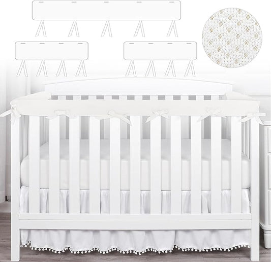 3 in 1 Crib Rail Covers for Teething,Soft Breathable Anti-Collision Crib Teething Rail Cover Edge Protector Strip(2025 New) (4pc-White)