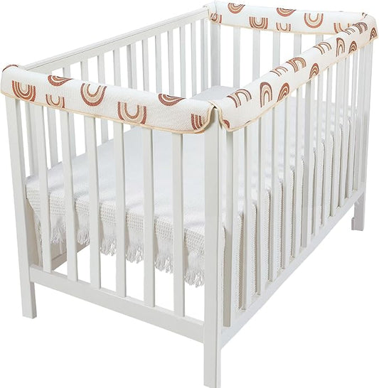 3 in 1 Crib Rail Covers for Teething,Soft Breathable Anti-Collision Crib Teething Rail Cover Edge Protector Strip(2025 New) (Kahki-Rainbow)