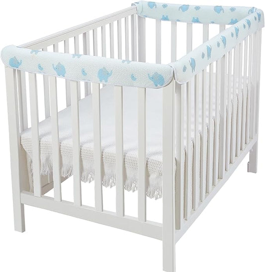 4 in 1 Crib Rail Covers for Teething,Soft Breathable Anti-Collision Crib Teething Rail Cover Edge Protector Strip(2025 New) (Blue-4pc)