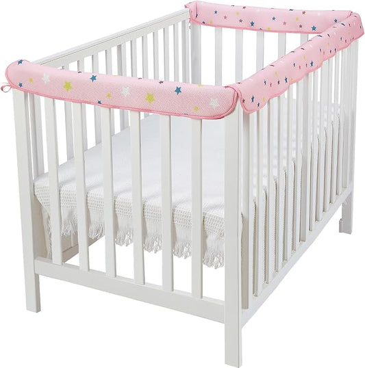 3 in 1 Crib Rail Covers for Teething,Soft Breathable Anti-Collision Crib Teething Rail Cover Edge Protector Strip(2025 New) (Star)