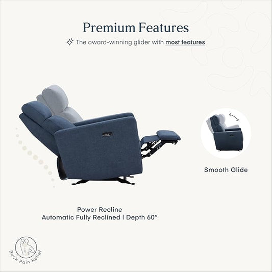 Nurture& The Glider – Premium Power Recliner Nursery Chair with Stationary Headrest | Designed for Comfort and Simplicity | Built-in USB Charger
