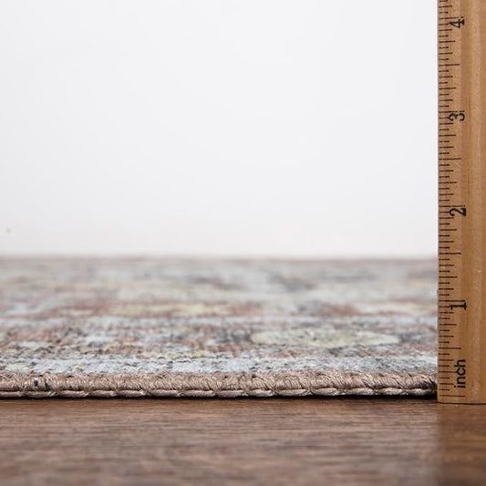 Bloom Rugs Washable Non-Slip 7 ft Runner - Gray/Blue/Blush Modern Abstract Runner for Entryway, Hallway, Bathroom, and Kitchen - Exact Size: 2.5' x 7'