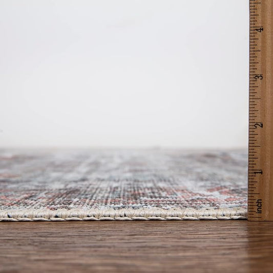 Bloom Rugs Washable Non-Slip 7 ft Runner - Gray/Coral Pink Traditional Runner for Entryway, Hallway, Bathroom, and Kitchen - Exact Size: 2.5' x 7'
