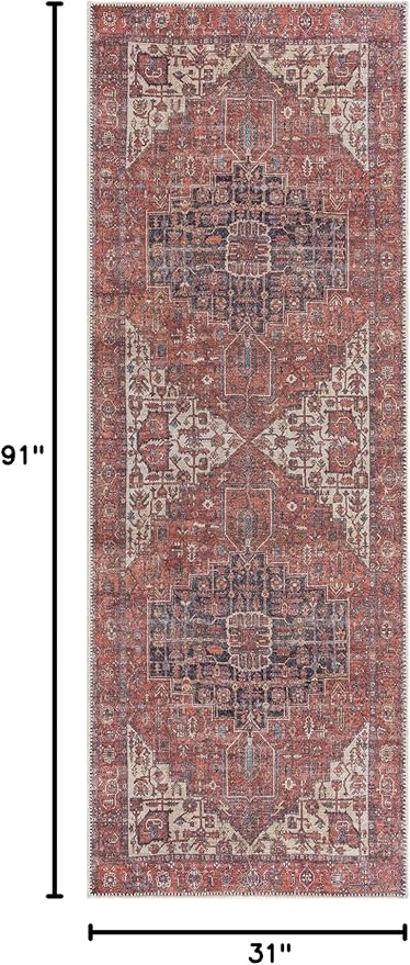 Bloom Rugs Washable 7 ft Runner - Red/Orange/Beige Traditional Runner for Entryway, Hallway, Bathroom, and Kitchen - Exact Size: 2.5' x 7'
