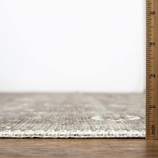 Bloom Rugs Washable Non-Slip 7 ft Runner - Beige/Gray Traditional Runner for Entryway, Hallway, Bathroom, and Kitchen - Exact Size: 2.5' x 7'