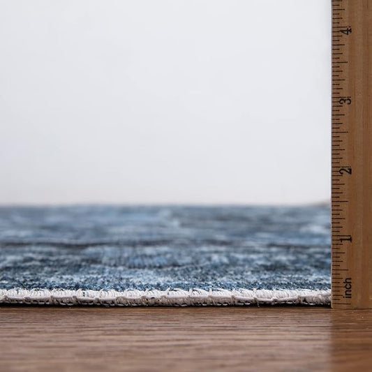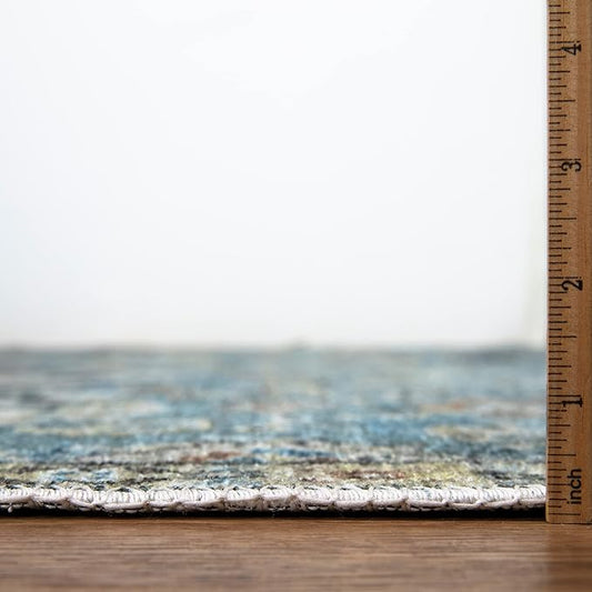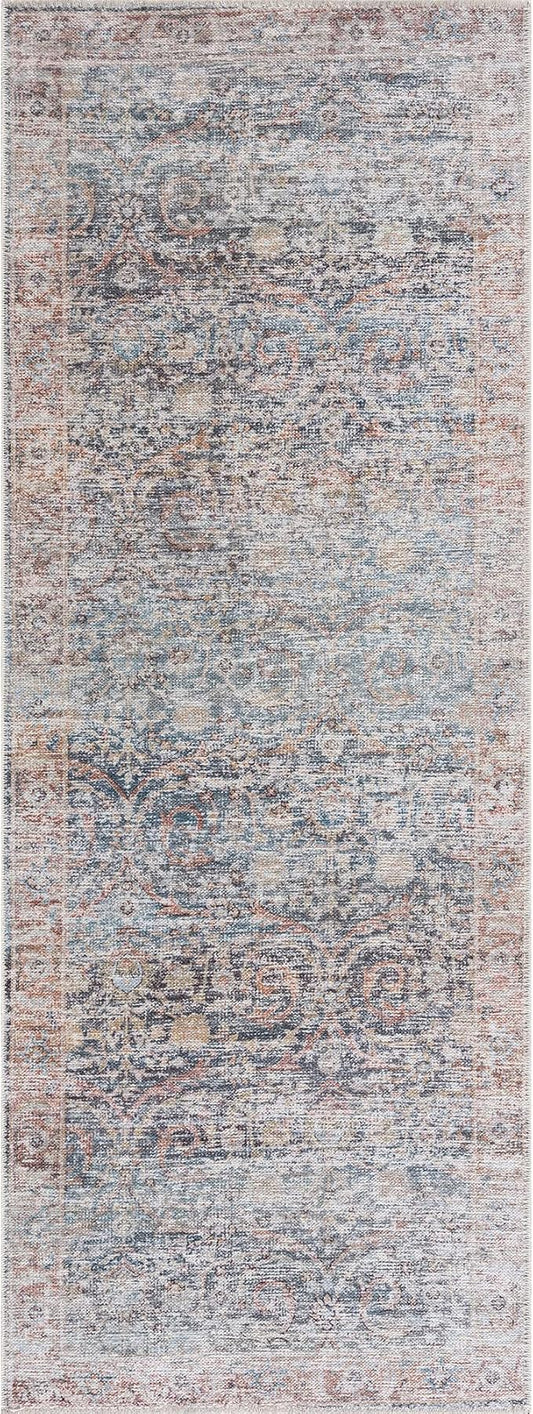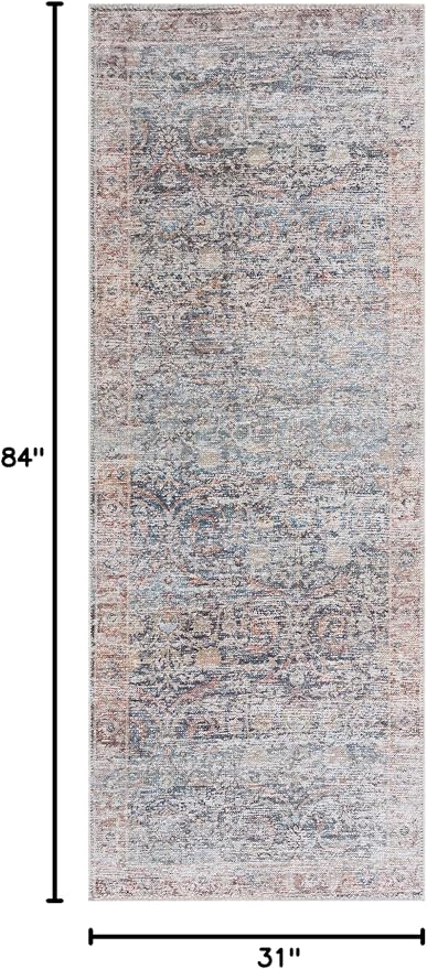 Bloom Rugs Caria Washable Non-Slip 7 ft Runner - Blue Traditional Runner for Entryway, Hallway, Bathroom, and Kitchen - Exact Size: 2'6" x 7'