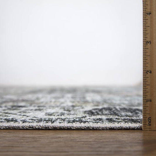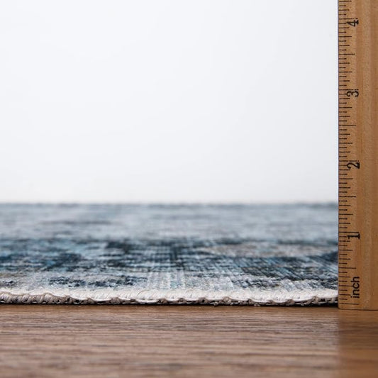 Bloom Rugs Caria Washable Non-Slip 10 ft Runner - Blue/Charcoal Traditional Runner for Entryway, Hallway, Bathroom, and Kitchen - Exact Size: 2'6" x 10'
