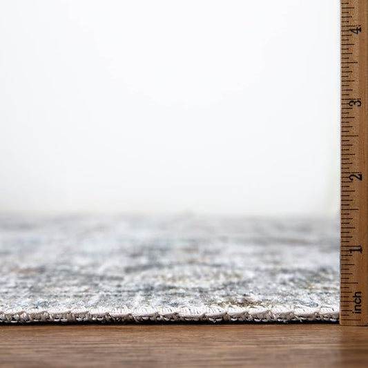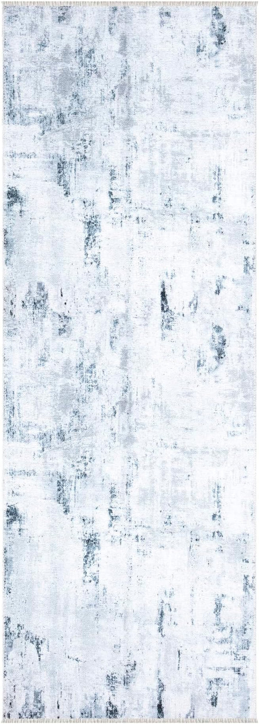 Bloom Rugs Caria Washable Non-Slip 10 ft Runner - Ivory/Silver/Blue Modern Abstract Runner for Entryway, Hallway, Bathroom, and Kitchen - Exact Size: 2'6" x 10'