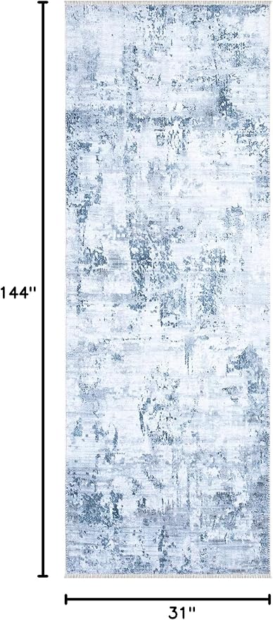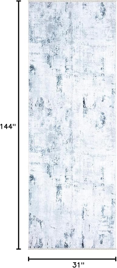 Bloom Rugs Caria Washable Non-Slip 12 ft Runner - Blue/Gray Modern Abstract Runner for Entryway, Hallway, Bathroom, and Kitchen - Exact Size: 2'6" x 12'