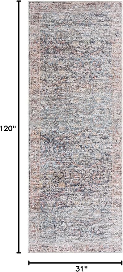 Bloom Rugs Caria Washable Non-Slip 10 ft Runner - Blue Traditional Runner for Entryway, Hallway, Bathroom, and Kitchen - Exact Size: 2'6" x 10'